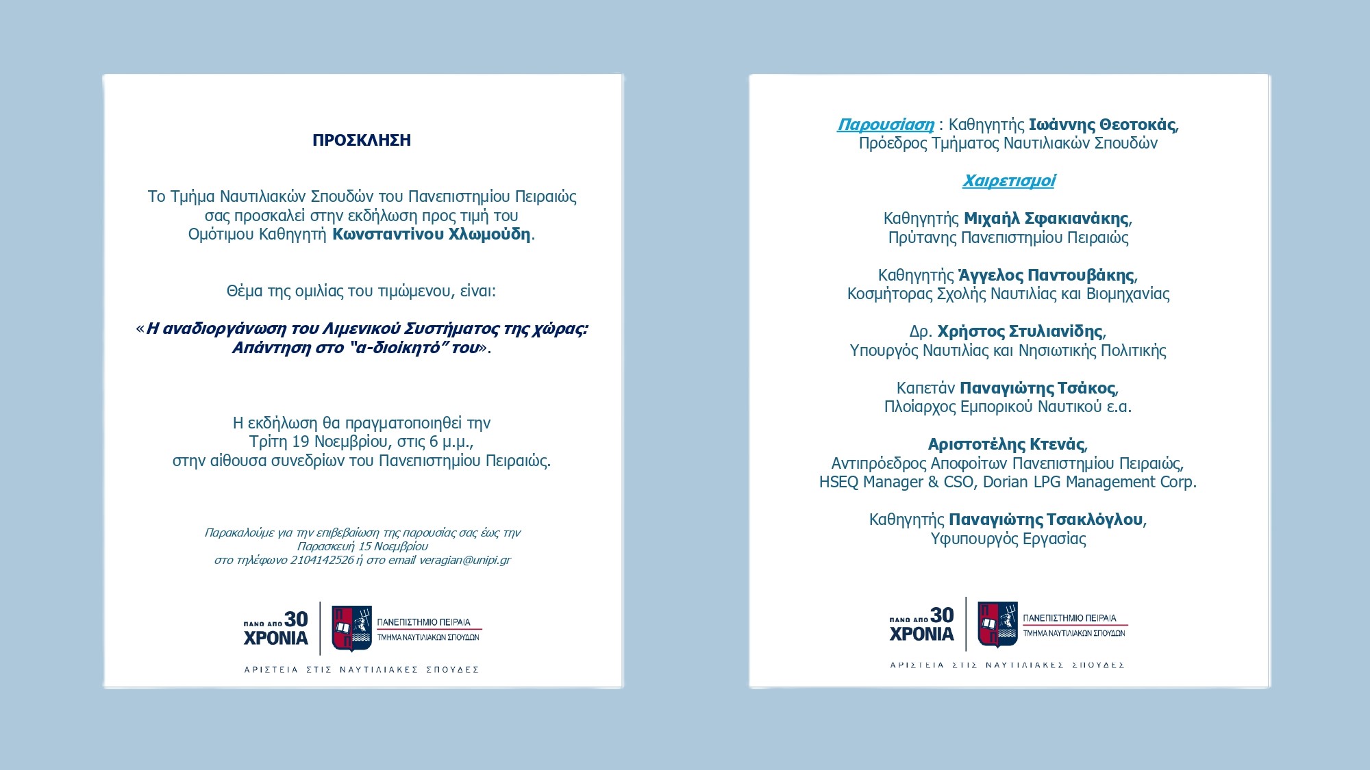 ΕΚΔΗΛΩΣΗ ΠΡΟΣ ΤΙΜΗΝ ΤΟΥ ΟΜΟΤΙΜΟΥ ΚΑΘΗΓΗΤΗ κ. ΧΛΩΜΟΥΔΗ